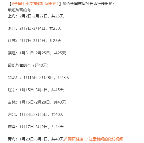 “全国中小学寒假时间”上热搜!最长40天!